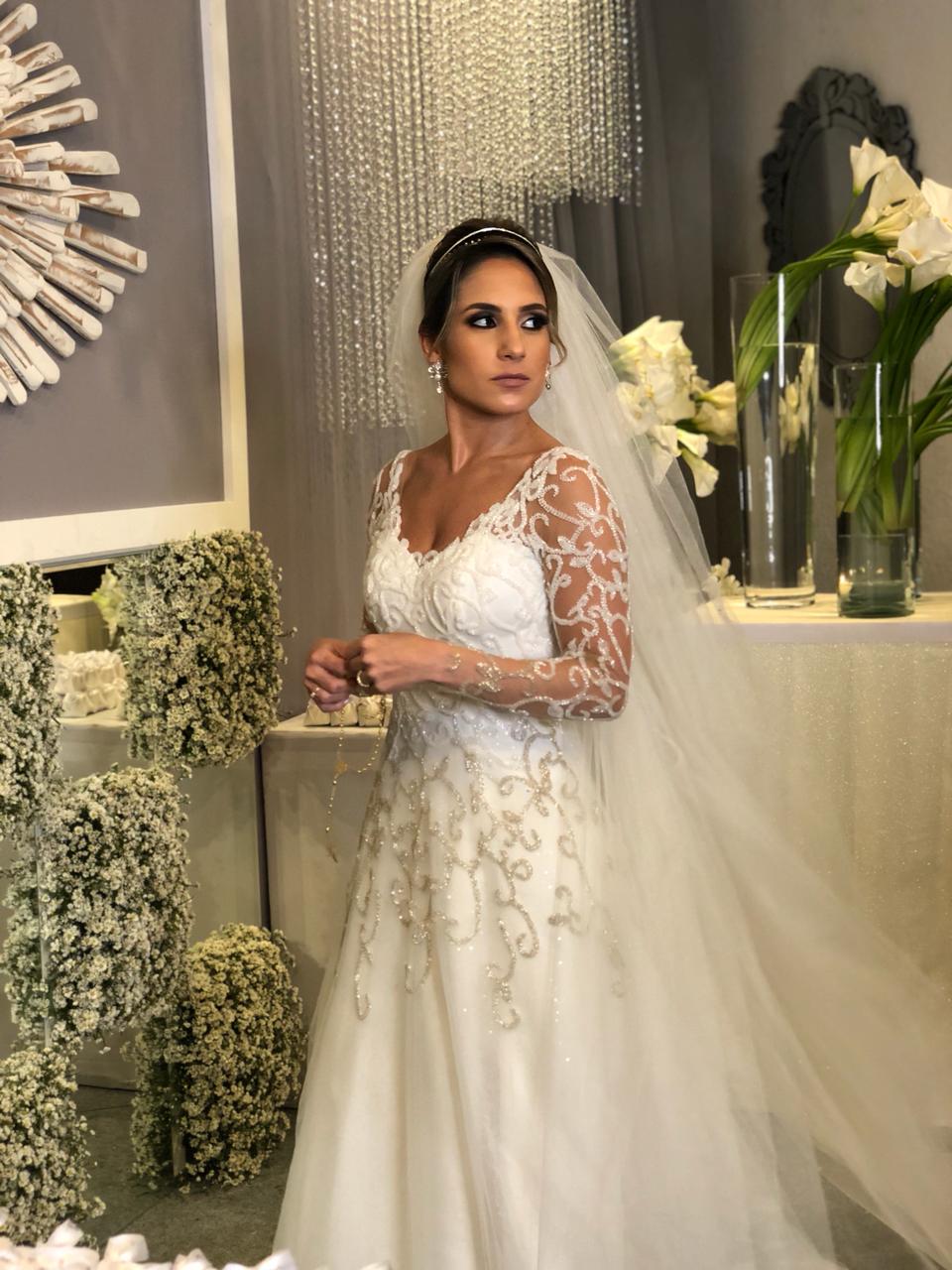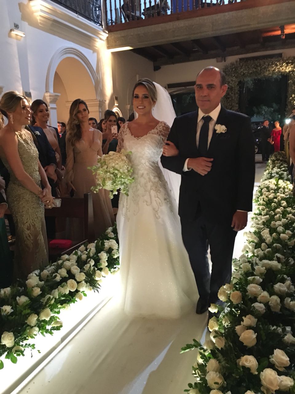 Emocionado, o pai, RENATO MACIEL GOMES NETO, conduziu sua filha ao altar. RENATA estava linda e elegante, numa criação da paulista Carol Hungria.