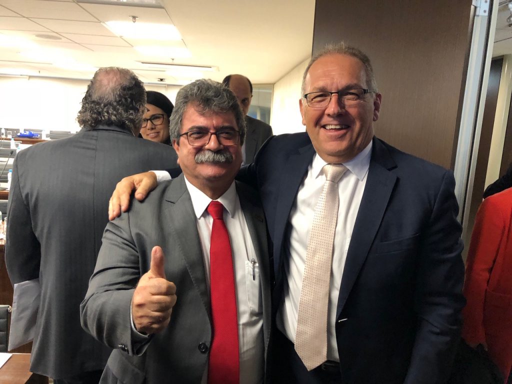 O presidente do Sistema FIERN, Amaro Sales de Araújo, e o ex-presidente da instituição, Flávio Azevedo, foram empossados nesta terça-feira, 30, na Diretoria da Confederação Nacional da Indústria (CNI). Amaro Sales no cargo de 1º Diretor Secretário; e Flávio Azevedo no cargo de Diretor. O Diretor 1º Secretário da Federação das Indústrias, Heyder Dantas, esteve presente à posse, que ocorreu durante 9ª reunião da CNI, em Brasília. O empresário Robson Braga de Andrade foi reeleito em votação unânime no dia 8 de maio de 2018, para o período de 2018 a 2022.