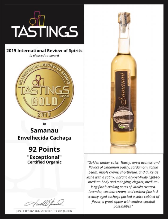 A Cachaçaria Artesanal Samanaú, produzida em Caicó, conquistou, em Chicago, nos Estados Unidos, a medalha de ouro da revista americana Tastings. A avaliação foi feita por um corpo de jurados do Beverage Testing Institute (BTI). A cachaçaria orgânica potiguar obteve a melhor nota entre as cachaças analisadas: atingindo 92 pontos, onde o máximo era 100. O foi divulgado nesta segunda-feira (1º).