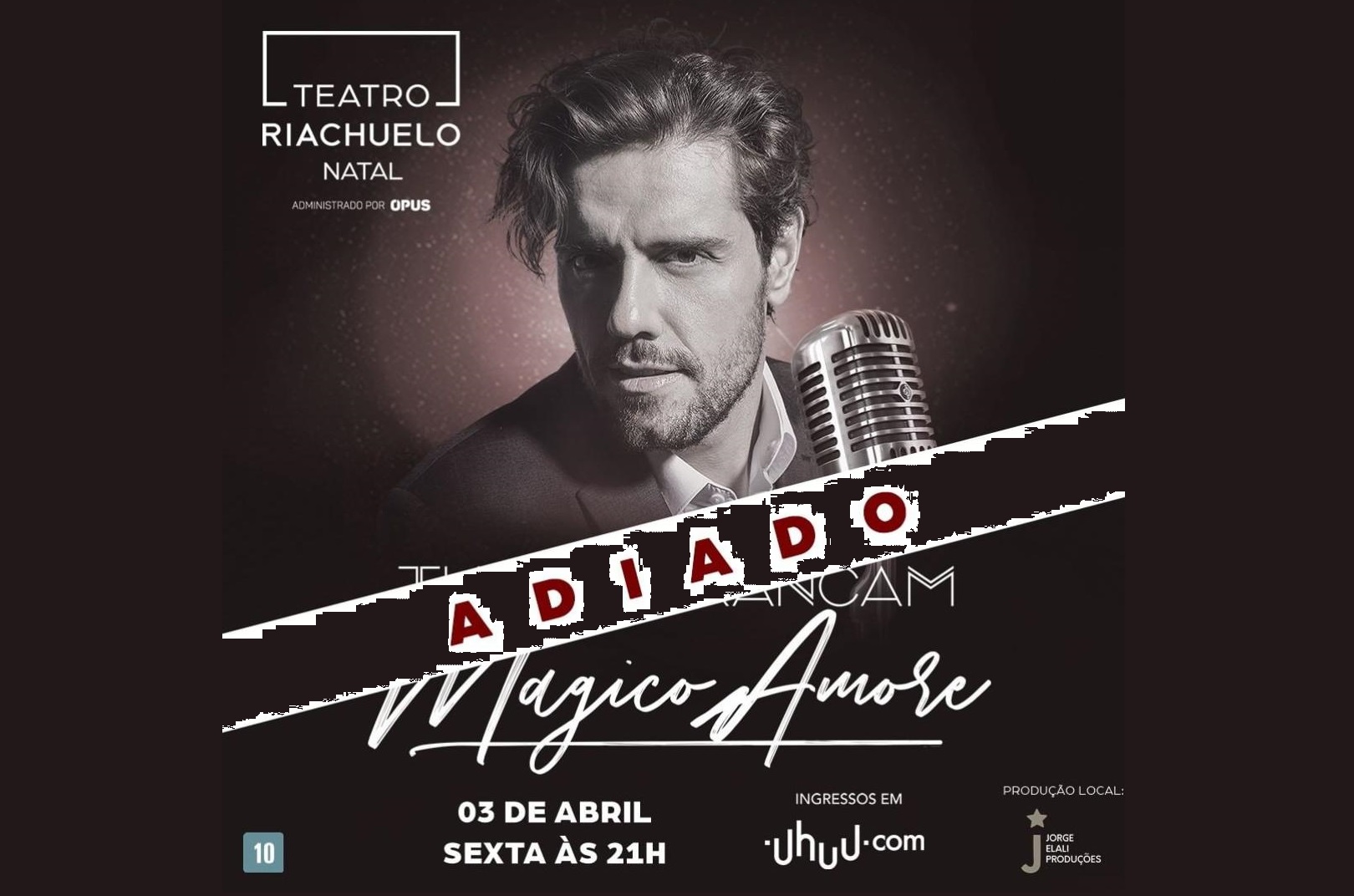 Devido ao covid-19 no Brasil, o show da nova turnê “Magico Amore” de Thiago Arancam, que aconteceria em Natal, dia 3 de abril, será adiado para o dia 23 de outubro.