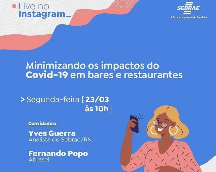 Pensando em ajudar o segmento de bares e restaurantes, o Sebrae/RN realizará uma live sobre “Minimizando os impactos do Covid-19 em bares e restaurantes” no Instagram (@sebraern) nesta segunda-feira (23/03) às 10h.
