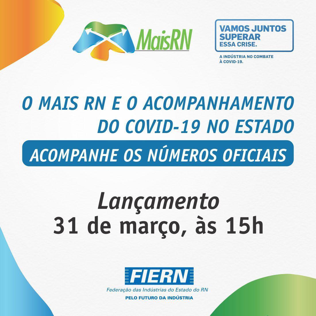 Para manter, durante a pandemia, um canal de diálogo com os empresários industriais e oferecer informações atualizadas sobre o Covid-19 no Rio Grande do Norte, a FIERN lança, nesta terça-feira (31), a versão digital do MAIS RN 4.0 COVID-19. A plataforma estará disponível, a partir das 15h, na página do Mais RN (maisrn.fiern.org.br) e no portal da FIERN (www.fiern.org.br/coronavirus).