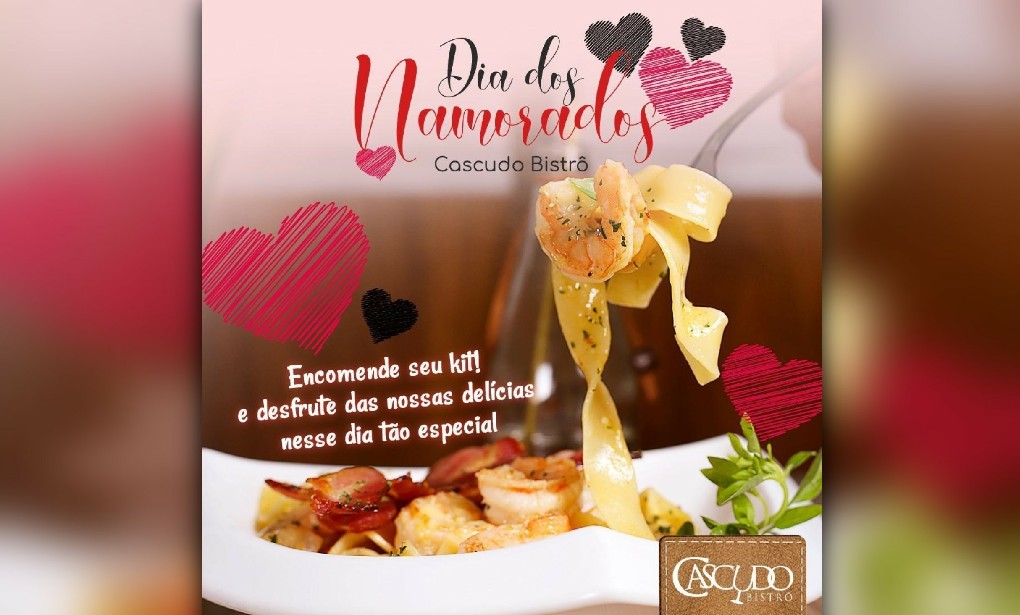 O Cascudo Bistrô oferece duas opções diferenciadas para delivery no Dia dos Namorados, disponíveis para o almoço do dia 11 de junho e almoço e jantar do dia 12.