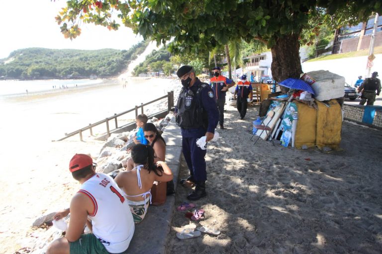 As forças de Segurança Pública e equipes de fiscalização dos órgãos da Prefeitura de Natal seguem com as ações de fiscalização na orla urbana da capital potiguar e no comércio do Alecrim e Cidade Alta. Neste sábado (01), foi dia de verificar se os estabelecimentos e cidadãos estavam cumprindo os decretos emitidos pelo Município.