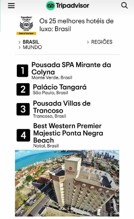 O Hotel Majestic da rede Best Western, localizado em Ponta Negra e associado ABIH-RN, foi eleito o 4º melhor hotel de luxo do país, e pelo 8º ano consecutivo, o melhor hotel de Natal. Reconhecido pelo selo “Traveller’s Choice – Best of the Best” do TripAdvisor, o Majestic está entre os 25 melhores hotéis de luxo, classificado entre os incríveis refúgios com hospitalidade diferenciada do Brasil.