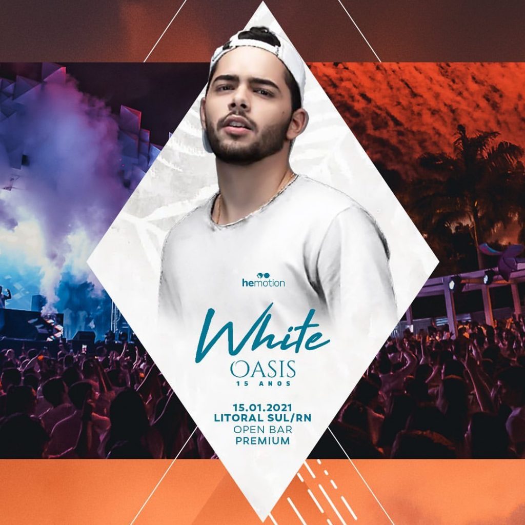 Está confirmada a edição limitada da White Party em 2021. A festa, que já é conhecida por ser a mais disputada e desejada do verão potiguar, terá muitas novidades e surpresas que surpreendem todos os anos o público. A próxima edição, intitulada Oasis, será dia 15 de janeiro no Espaço Di Trento, Litoral Sul, e promete muita animação para comemorar 15 anos da label.