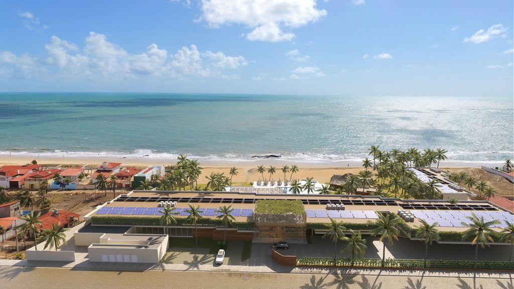 Com 8.721 m² de área construída, o resort será entregue com 114 apartamentos de até 74 m², divididos entre quarto, sala de estar, copa/cozinha e sacada, totalmente mobiliados e equipados com sofá-cama, microondas, frigobar, smart TV, enxoval completo, entre outros itens.