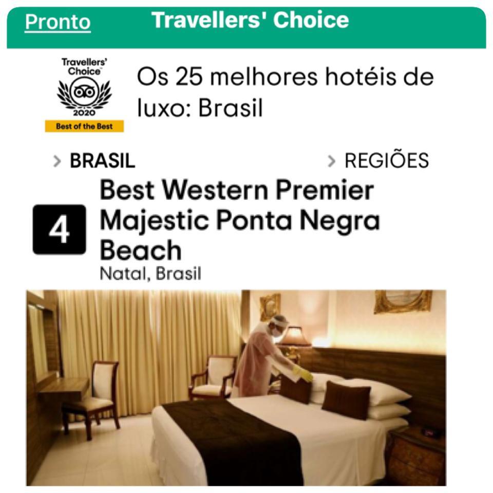 Pelo 9º ano consecutivo, o Hotel Majestic Natal está entre os melhores hotéis de luxo do país e eleito também, o melhor do Rio Grande do Norte. Mais uma vez o hotel da rede Best Western, localizado em Ponta Negra, foi reconhecido pelo selo Travellers’ Choice – Best of the Best 2020 do TripAdvisor, como o 4º entre os 25 melhores hotéis de luxo do Brasil.