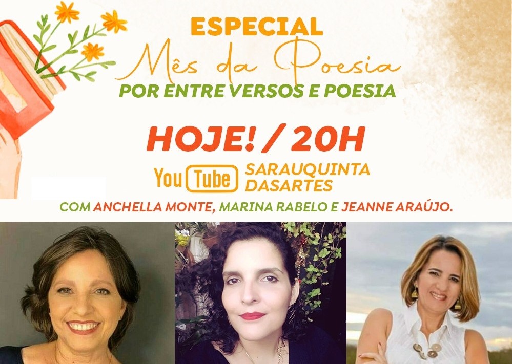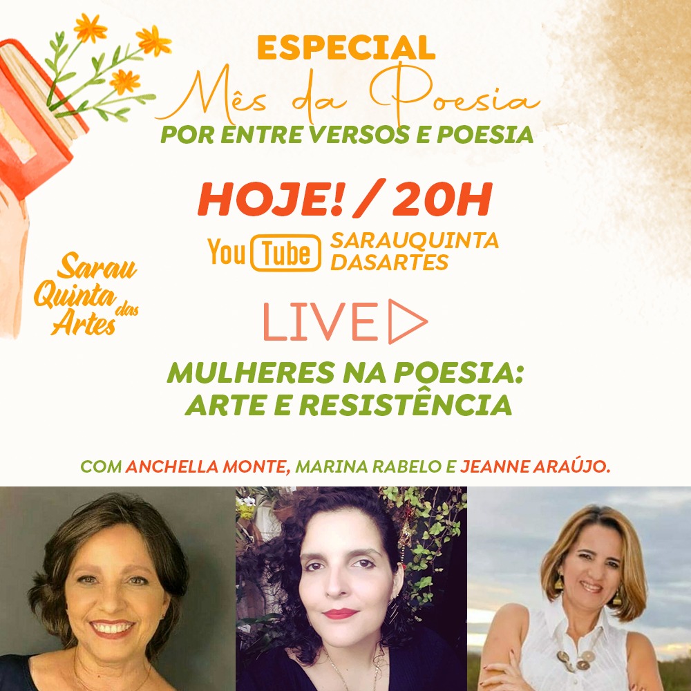 Nesta quinta-feira (11) o projeto terá como tema “MULHERES NA POESIA: ARTE E RESISTÊNCIA”, com as convidadas: Anchella Monte, Jeanne Araújo e Marina Rabelo.