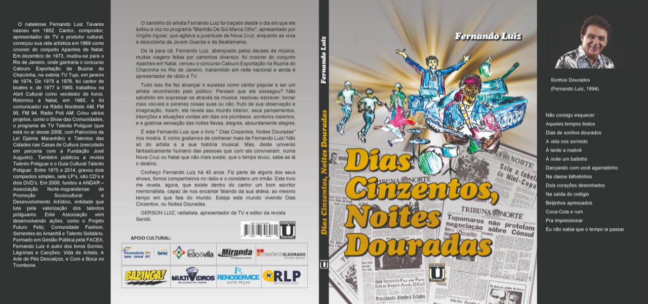 A mais nova publicação do cantor Fernando Luiz já se encontra na gráfica para a impressão. “Dias Cinzentos, Noites Douradas” é o quinto lançamento do autor, que dessa vez narra fatos que marcaram a geração de uma época. A data do lançamento da obra, prevista para julho, foi adiada, mas ele afirma que muito em breve será anunciada e que os primeiros exemplares, mais de uma centena, chegarão pelo correio para quem reservou, antecipadamente, através de pré-venda.