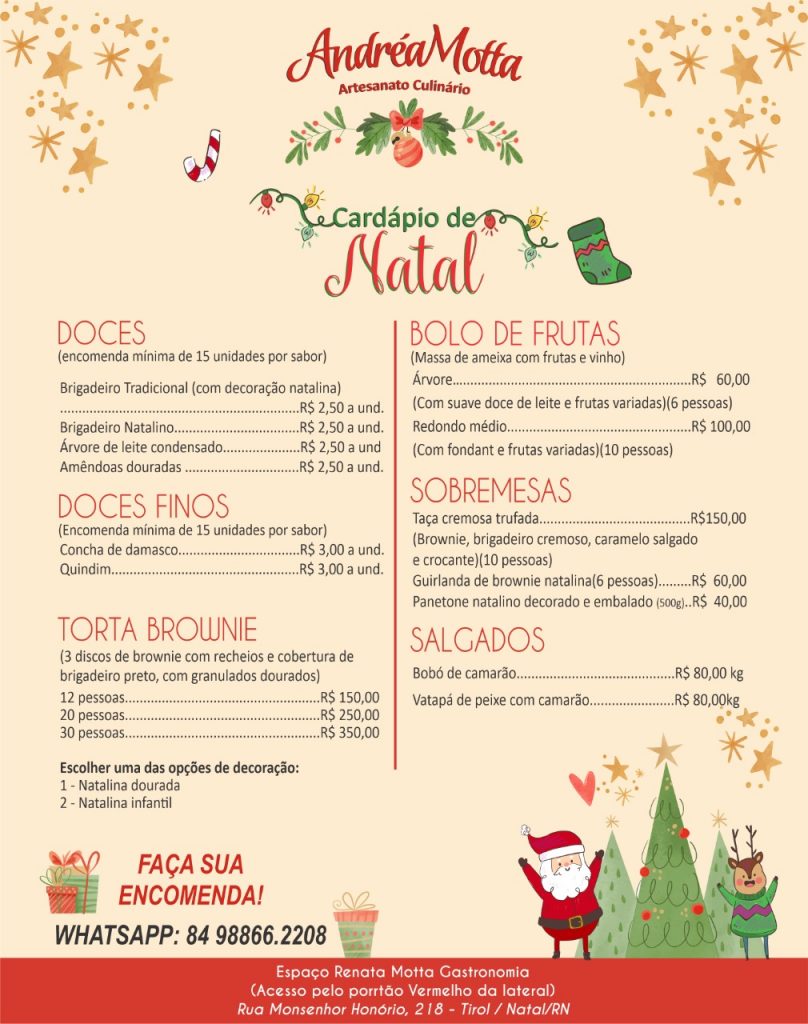 O Natal está chegando e para comemorar em grande estilo, que tal encomendar os quitutes de Andrea Motta para deixar a data ainda mais marcante?