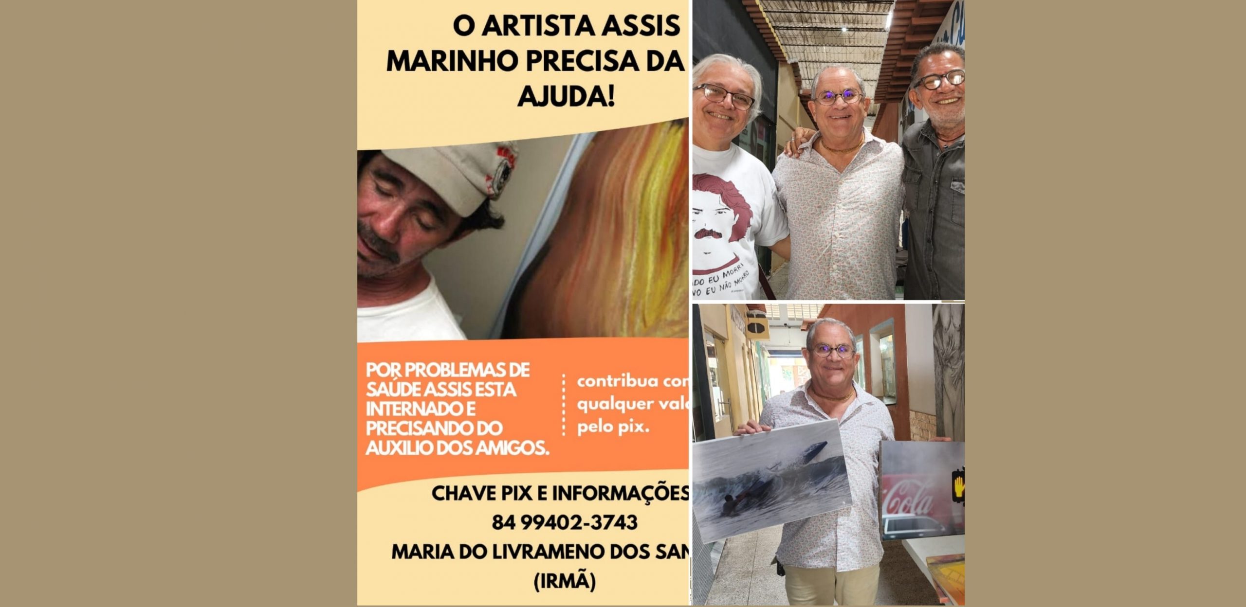 Familiares, amigos e admiradores do artista plástico Assis Marinho estão unidos em torno de uma campanha para arrecadar fundos visando a proporcionar um tratamento de saúde ao artista.