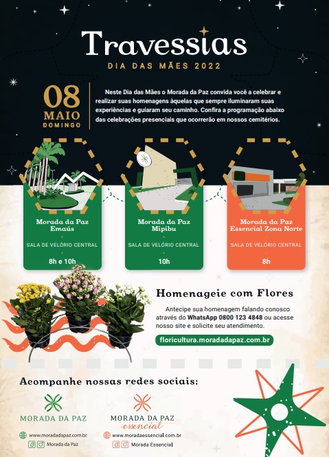 Para além de celebrar a vida das mulheres que vivem a experiência da maternidade, o Dia das Mães também é um dia de reflexão e saudade para aqueles que perderam a mãe. Dessa forma, para relembrar essas histórias, o cemitério e crematório Morada da Paz, uma empresa do Grupo Morada, promove uma programação de celebrações presenciais no domingo (08) em homenagem a todas as mães.