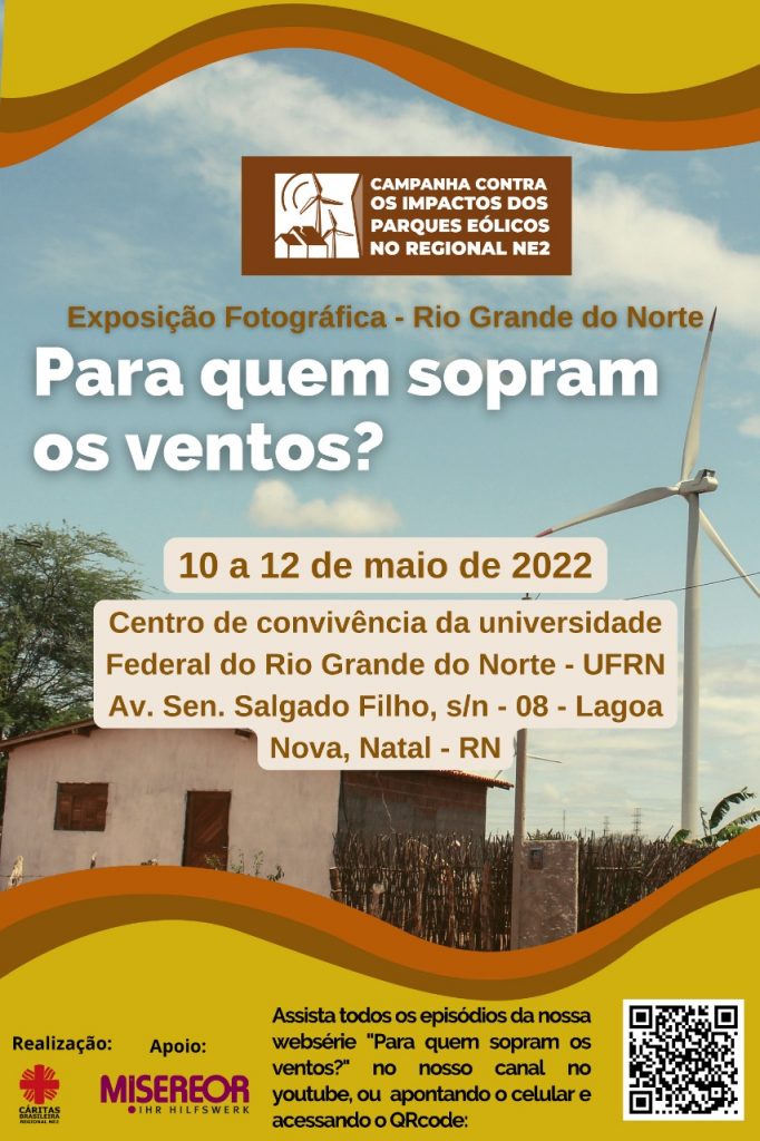 A mostra faz parte da Campanha contra os impactos de Parques Eólicos, na região Nordeste,  iniciativa da Cáritas Brasileira  – Regional Nordeste 2 (organismo da Igreja Católica), com apoio da instituição católica alemã, Misereor. O objetivo é sensibilizar e alertar sobre impactos em nível socioeconômico, ambiental e de saúde causados pelo atual modelo de implementação dos megaprojetos de energia eólica no nordeste do Brasil. Essa temática vem sendo abordada de forma itinerante pela campanha, que perpassou sua exposição em Universidades nos estados de Pernambuco, Paraíba e Alagoas e finaliza no Rio Grande do Norte.