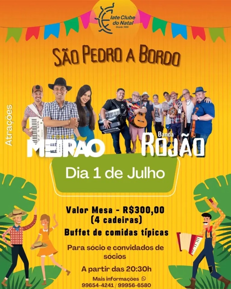 Acontece hoje o tradicional São Pedro a Bordo, do Iate Clube Natal. O evento está marcado para as 20h30, com animação da Banda Rojão e do “pé de serra” do Meirão.