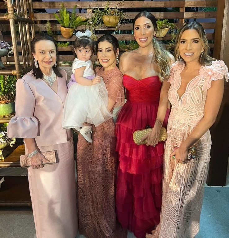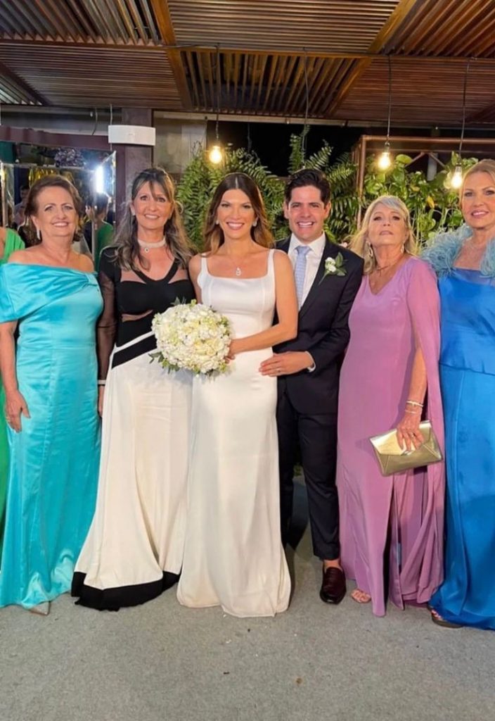 Nina Salustino, mãe da noiva, estava chiquérrima, numa criação turquesa de Juraci Lira; a mãe do noivo, Soraya, estava de pink.