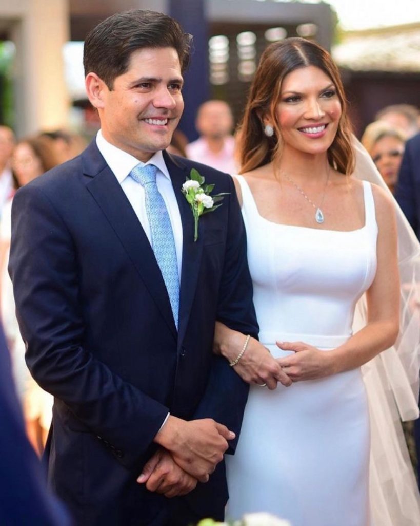 O irmão da noiva, Ministro Fabio Faria, interrompeu a agenda ministerial-política para participar do casamento da irmã Janine com Rafael Roberto, na companhia da mulher, Patricia Abravanel, e filhos.
