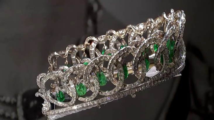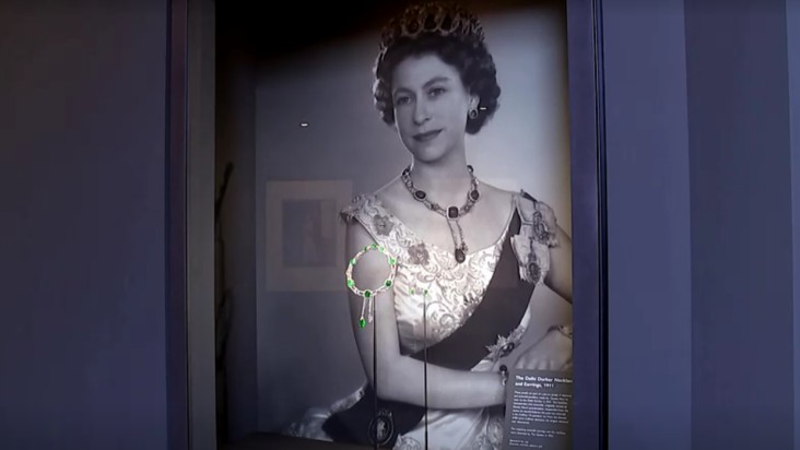As peças de joalheria em exposição, de acordo com Guitaut, variam entre itens desde o diadema que a então princesa Elizabeth usou durante a coroação de seus pais em 1937, até peças presenteadas a ela para seu aniversário de 18 anos e peças que usou nos anos 1950.