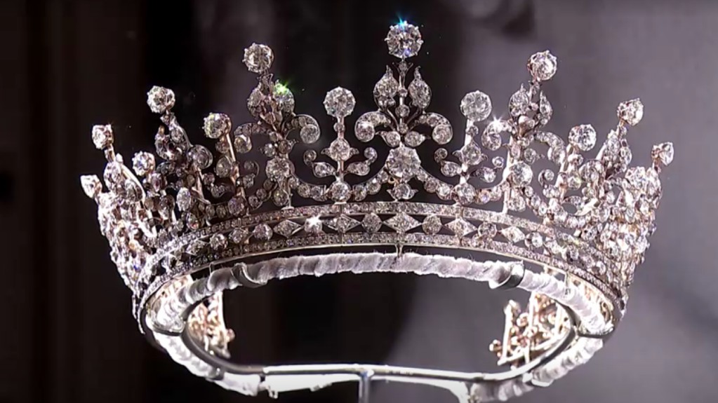 Tiaras, brincos e colares são parte da exposição “A Ascensão da Rainha”, marcando seu reinado de sete décadas no trono britânico, um recorde entre os monarcas do país.