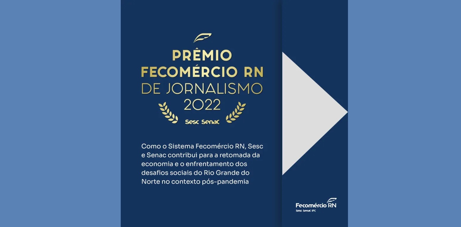 Com o tema, “Como o Sistema Fecomércio RN, Sesc e Senac contribui para a retomada da economia e o enfrentamento dos desafios sociais do Rio Grande do Norte no contexto pós-pandemia”, a edição 2022 do Prêmio de Jornalismo, promovido pelo Sistema Fecomércio Rio Grande do Norte, vai destinar R$ 50 mil reais em prêmios para comunicadores potiguares.