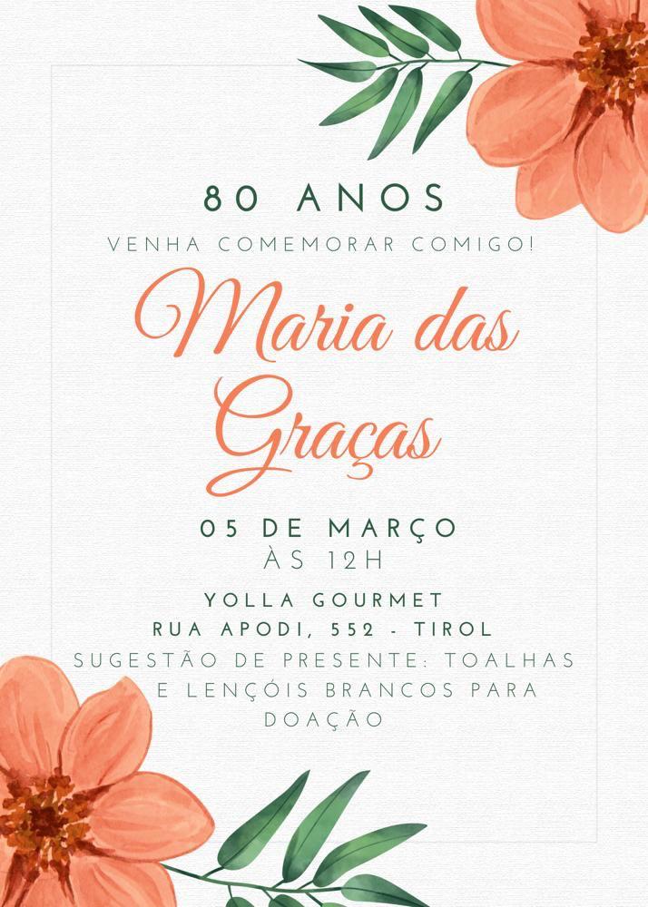 Outra querida é GRAÇA QUEIROZ, que orgulhosamente comemora 8.0 neste domingo reunindo a família e amigos de longas datas. Graça é amiga, correta e realizada com os dois filhos, Luis José e Ricardo, as noras e netos. Parabéns, queridas.