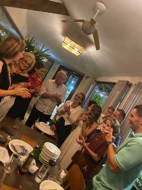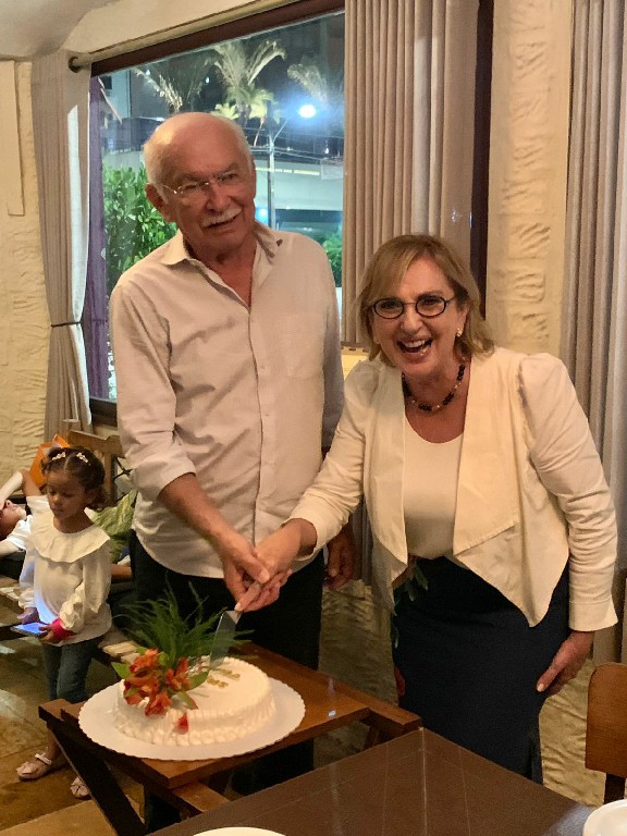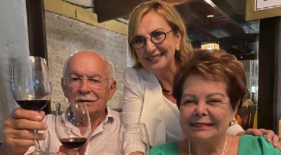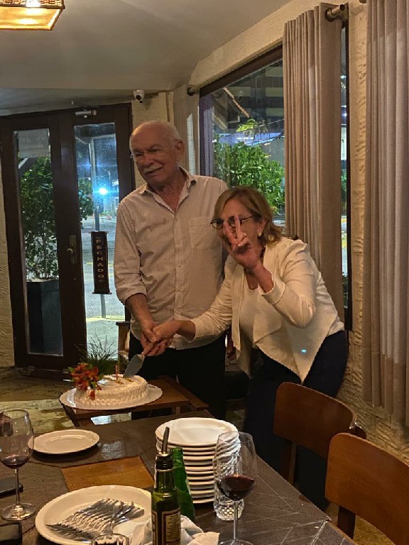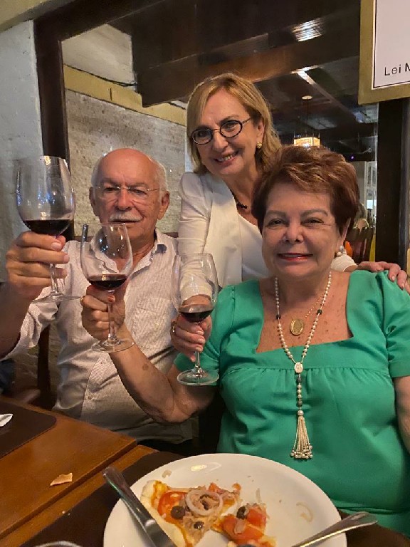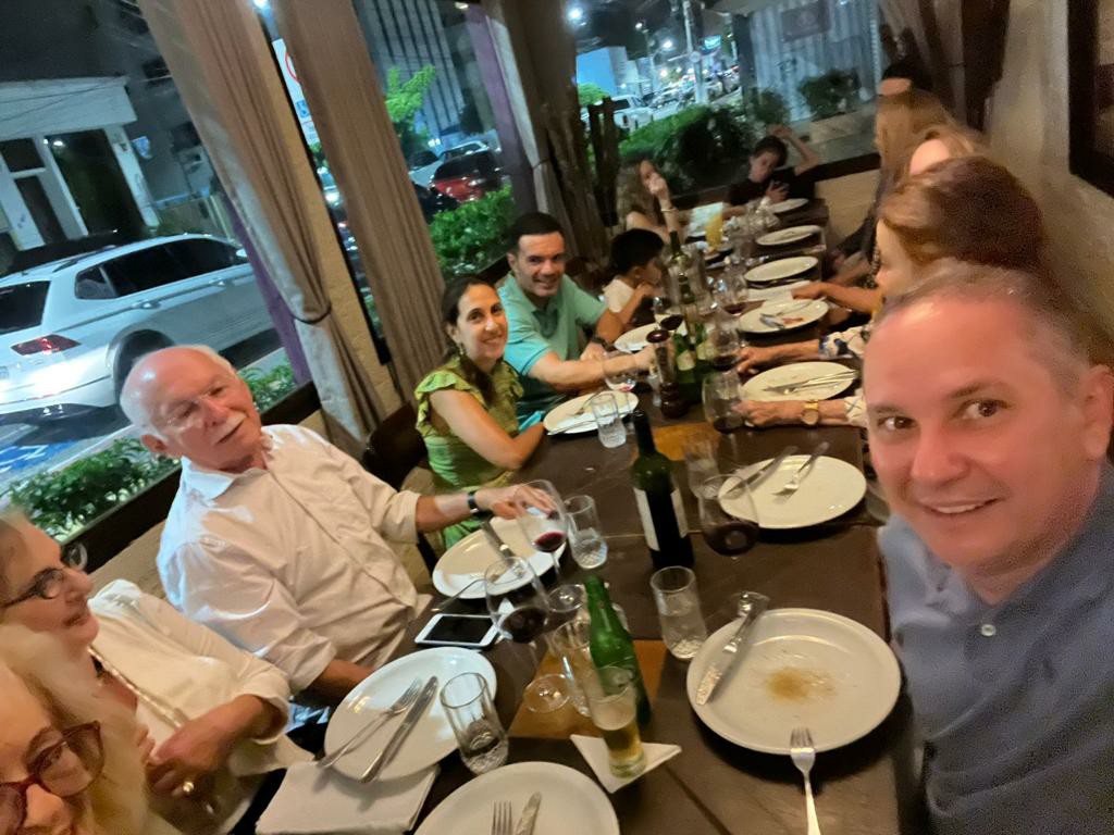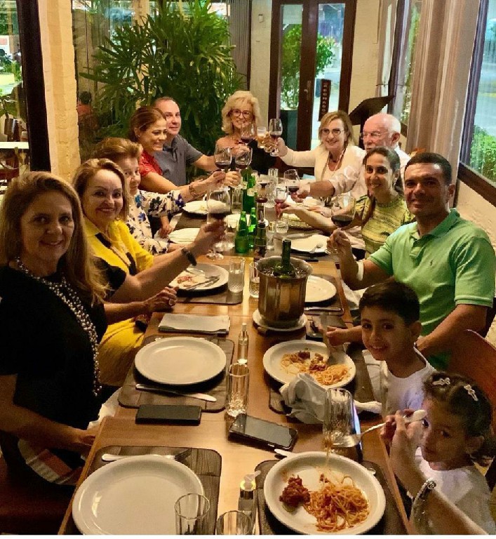 Uma de sábado em família, no lugar predileto dos netos: pizzaria Basilicos, foi abordada de Aninha Melo para “cantar parabéns“. Momento que aproveitou para oficialmente apresentar seu namorado, JOÃO FARIA, numa noite de família e amigos. Todos nós estamos vibrando com essa nova fase: primos viúvos, caicoenses que se reencontram. Ao seu lado, os filhos Cristiano, Mariana seus musos e filhos. Parabéns.