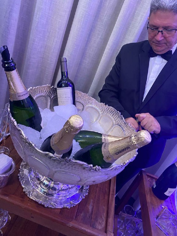 Após a solenidade um elegante jantar reuniu em confraternização no salão de eventos. Jantar estrelado, serviço volante assinado pelo Dúnia, decoração elegante. Nos tintins Möet Chandon, Catena Zapata e o Walker Gold.
