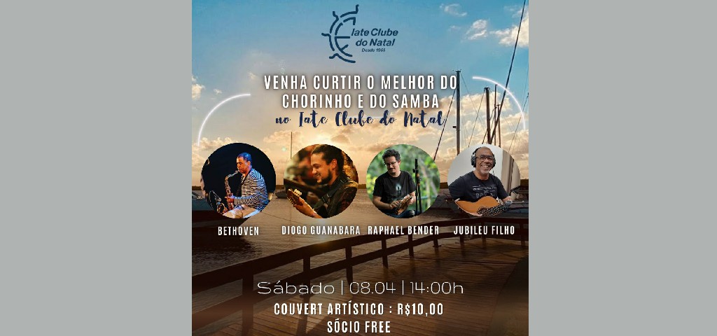 Sábado de aleluia, dia 8 de abril, às 14h, haverá uma apresentação especial no Iate Clube para festejar a visita de Diogo Guanabara, há anos morando na Europa, em sua cidade Natal.