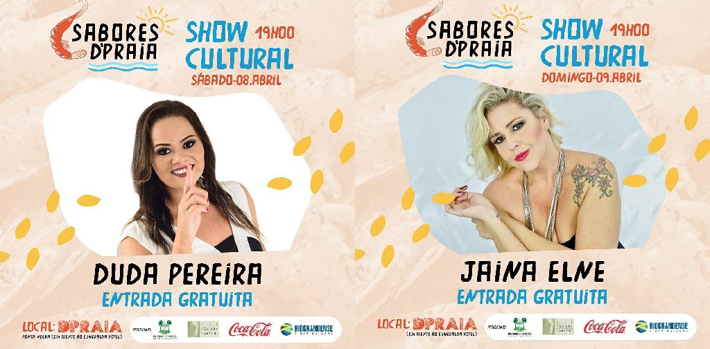 Neste fim de semana, a programação musical será às 19h com as cantoras Duda Pereira, no sábado (08) e Jaina Elne, no domingo (09).