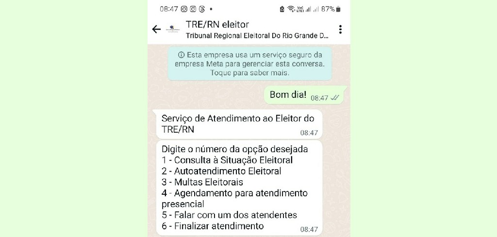 TRE-RN DISPONIBILIZA ATENDIMENTO AO ELEITOR VIA WHATSAPP
