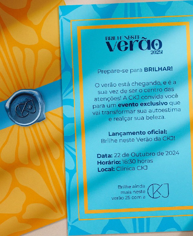 A Clínica Keline Jácome lança nesta terça-feira (22/10) seus protocolos destinados ao Verão. São técnicas exclusivas, com assinatura da dermatologista e sua equipe profissional e multidisciplinar, para minimizar problemas que se evidenciam na estação mais quente do ano, como sobrepeso flacidez e celulites. O evento Brilhe neste Verão é exclusivo para convidados e ocorre a partir das 16h30, na CKJ.