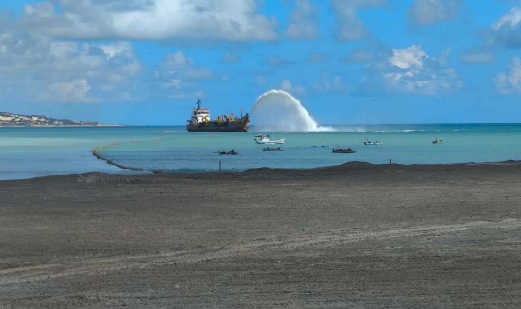 Os trabalhos iniciaram em 20 de setembro de 2024, às 23h, quando a draga começou a depositar os primeiros 2 mil metros cúbicos de areia, marcando oficialmente o início da intervenção. No total, 1 milhão de metros cúbicos de areia foram utilizados para recuperar e ampliar a faixa de areia, que antes enfrentava problemas de erosão e redução do espaço disponível para banhistas e turistas.