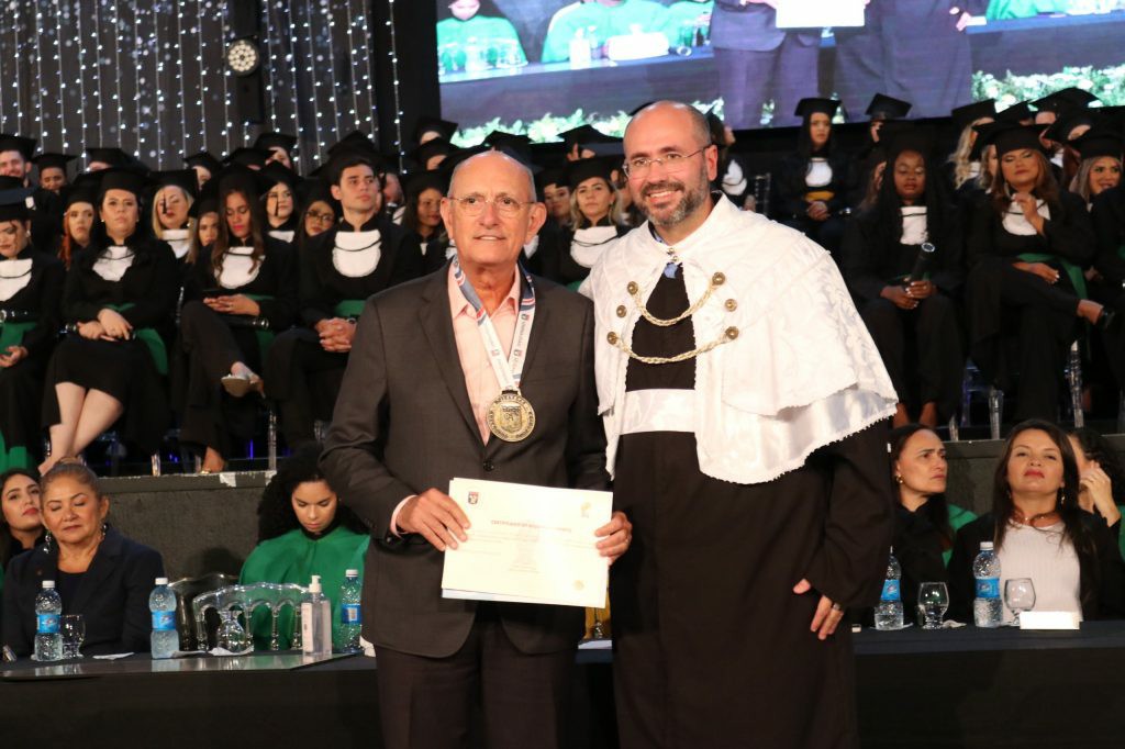 O presidente da Federação das Indústrias do Estado do Rio Grande do Norte (FIERN), Roberto Serquiz, foi homenageado na colação de grau do Centro Universitário Maurício de Nassau com a Medalha Maurício de Nassau (Uninassau), na noite dessa quinta-feira (6), pelo trabalho à frente da FIERN. A honraria é entregue a personalidades de destaque na sociedade pelo compromisso com o progresso econômico, social e ambiental.