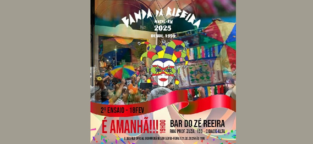 A Banda da Ribeira fará seu segundo ensaio aberto nesta terça-feira (18), às 19h, no Bar do Zé Reeira, na Cidade Alta.