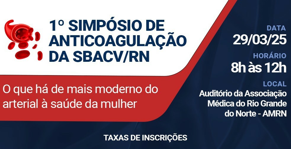 A Sociedade Brasileira de Angiologia e Cirurgia Vascular – Regional Rio Grande do Norte (SBACV/RN) promoverá, no dia 29 de março de 2025, das 08h às 12h, o 1º Simpósio de Anticoagulação. O evento vai acontecer no auditório da Associação Médica do Rio Grande do Norte e contará com a participação de renomados especialistas na área.