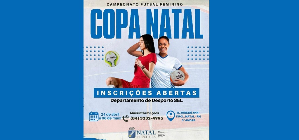 As inscrições para a tradicional Copa Natal de Futsal Feminino já estão abertas. Realizada pela Prefeitura do Natal, através da Secretaria Municipal de Esporte e Lazer (SEL), a competição promete reunir dezenas de equipes e atletas, movimentando o cenário esportivo feminino da capital. As equipes interessadas podem se inscrever até o dia 8 de maio, diretamente no Departamento de Desporto da SEL, localizado no 3º andar da Rua Jundiaí, 644, bairro Tirol.