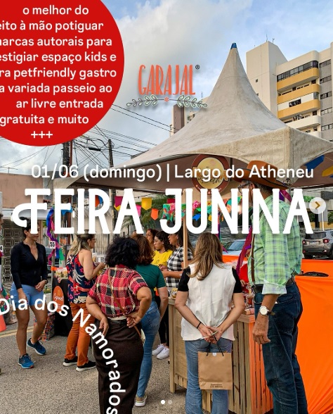 A Feira Garajal terá mais uma edição neste domingo (1) no Largo do Atheneu. Já estão confirmadas a Garajal Junina e Dia dos Namorados.