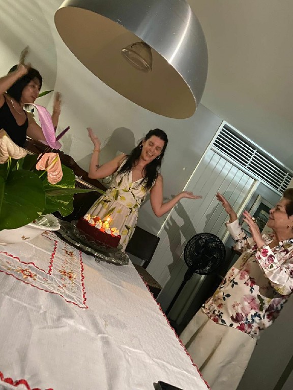 Deixo meu beijo afetuoso pra Yasmin e Ciro. Que comecem as comemorações. Faz de conta que estaremos aí: eu, sua mãe Camille, sua avó Fafá Mann, suas tias e primos em torno de você e de Ciro.