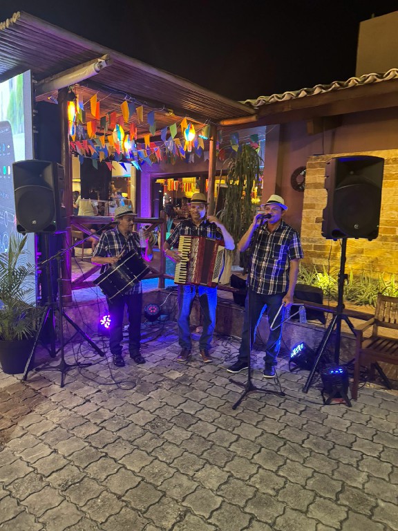 Serviço funcionando show e mesas só no andar superior, climatizado e com buffê fixo de comidas típicas. Pena que sempre surgem uns “galos de briga” pra tumultuar… danado rapidamente.