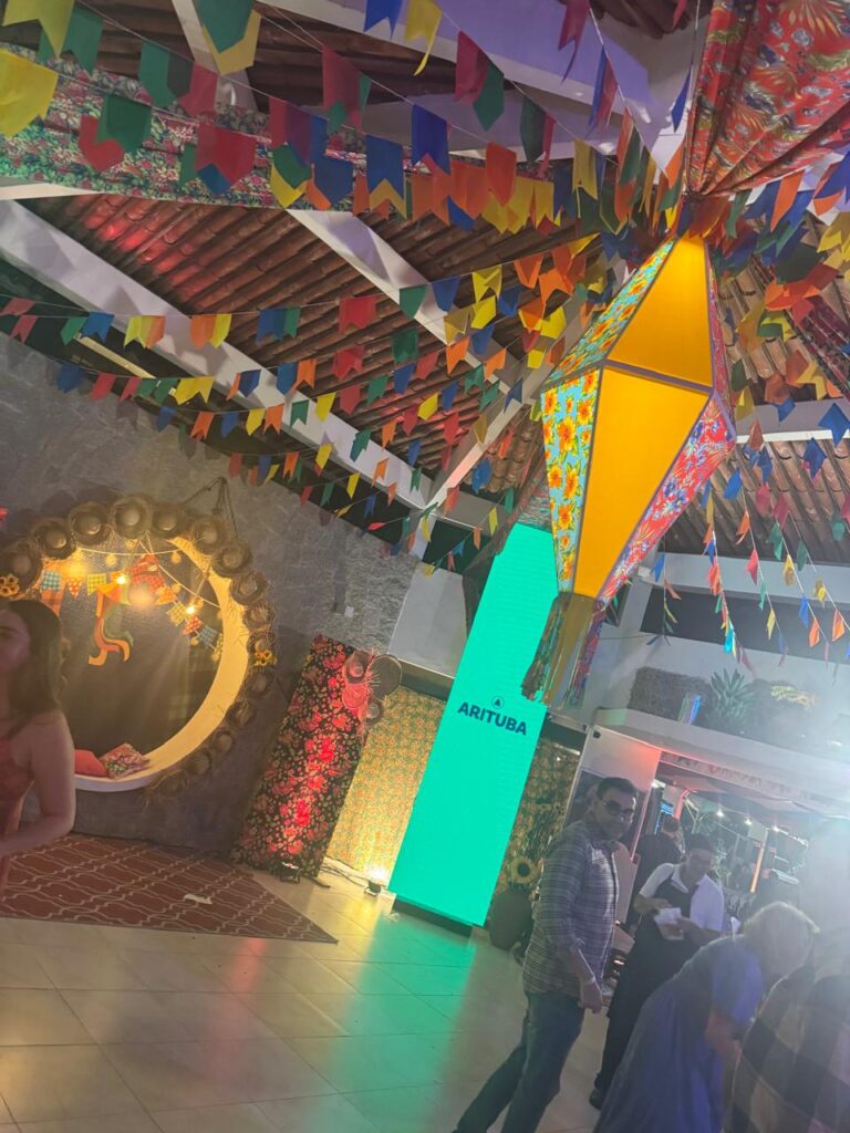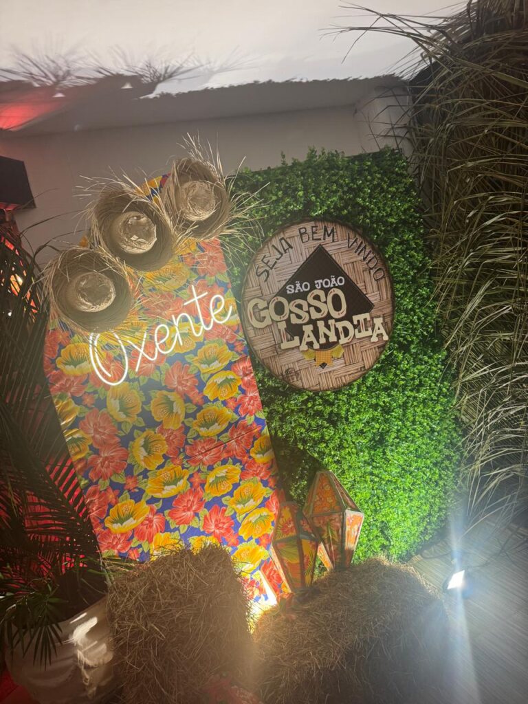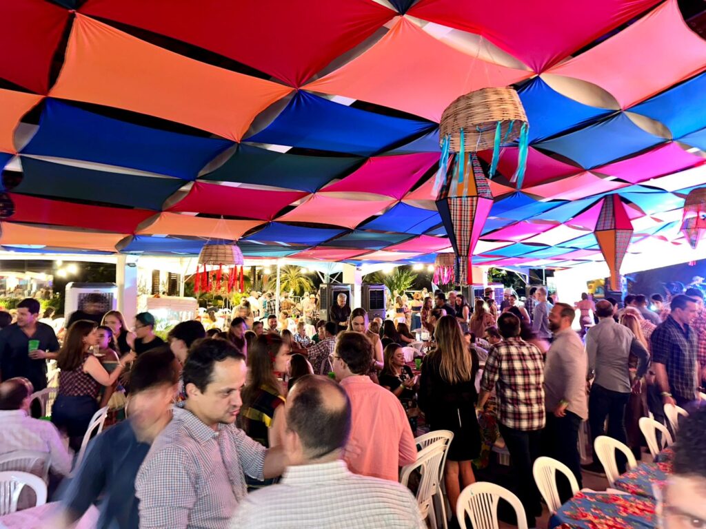 Fogueira, decoração nos diversos ambientes e salões. Uma integração perfeita e tinha até a Barraca do Beijo…