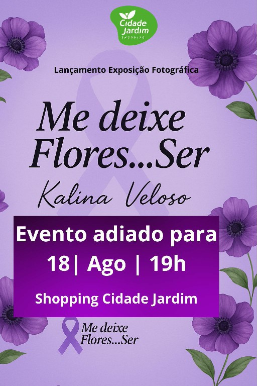 O Shopping Cidade Jardim recebe a exposição fotográfica “Me deixe flores…Ser”, da fotógrafa Kalina Veloso, a partir desta segunda-feira (18), a partir das 19h.