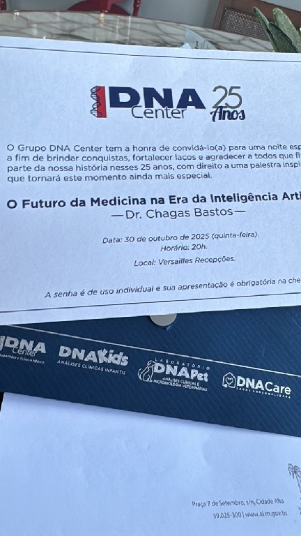 Noite será aberta com uma palestra do Dr. Chagas Bastos, que vai abordar o tema O Futuro da Medicina na Era da Inteligência Artificial… Uma noite de informações e confraternização reunindo pessoas que fazem parte da história do DNA CENTER.
