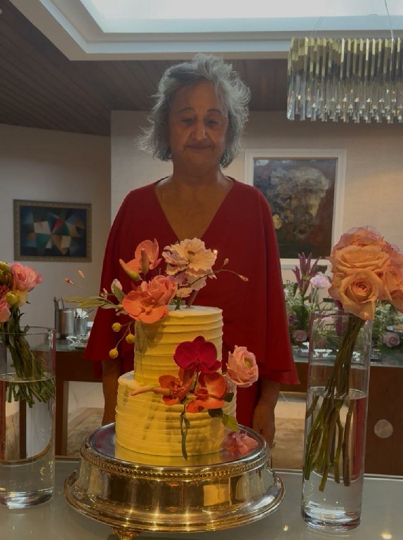 A nora querida, Cyndra Potiguar, foi responsável por tudo: bufê top, como sempre, de Fátima Barros; bolo e doces de Camila Melo; e uma música maravilhosa de Edja Alves, cantando brasilidades.