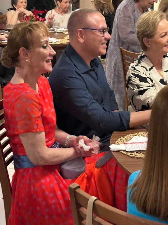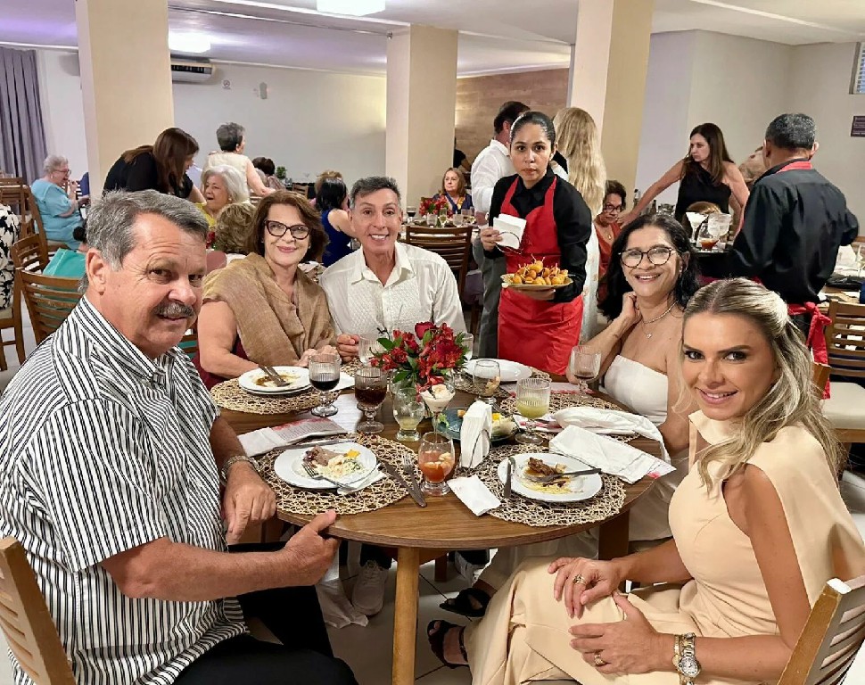 O salão climatizado do Espaço Renata Motta acolheu em mesas redondas e retangulares as famílias Motta, Câmara, amigas de toda uma existência. Um serviço volante quentinho delicioso; mesas fixas na mesma categoria de Renata Motta. Que bom foi rever tantos amigos e compartilhar da alegria e jovialidade dessa “oitentona” Marisa com o seu companheiro Sílvio Salustino e dos filhos Karla, Roberto e Geórgia.