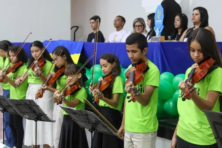 O evento foi agraciado com apresentação do Quinteto de Música da Semuc, das crianças do Projeto Nas Asas do Louvor, além da presença de algumas autoridades e representantes dos segmentos, como a Articuladora Municipal do Selo UNICEF e Secretária da Assistência Social, Fativan Alves; a Presidente do COMDICA, Rozi Pontes; o representante do Quilombo Moita Verde, Maxsuel Fernandes; o NUCA, representado através dos adolescentes Samir Lopes e Felícia Andrade do Nascimento; e a Conselheira do Tutelar, Cristiane Alves.