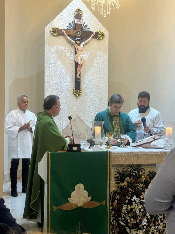 Final de tarde da terça feira foi de missa festiva na Capela de São Judas Tadeu, uma concelebração dos Monsenhores Charles, pároco da Santa Terezinha, e do potiguar Monsenhor Flávio José de Medeiros Filho, Cônego da Basílica de São Pedro no Vaticano, nomeado pelo Papa Francisco em abril de 2022.