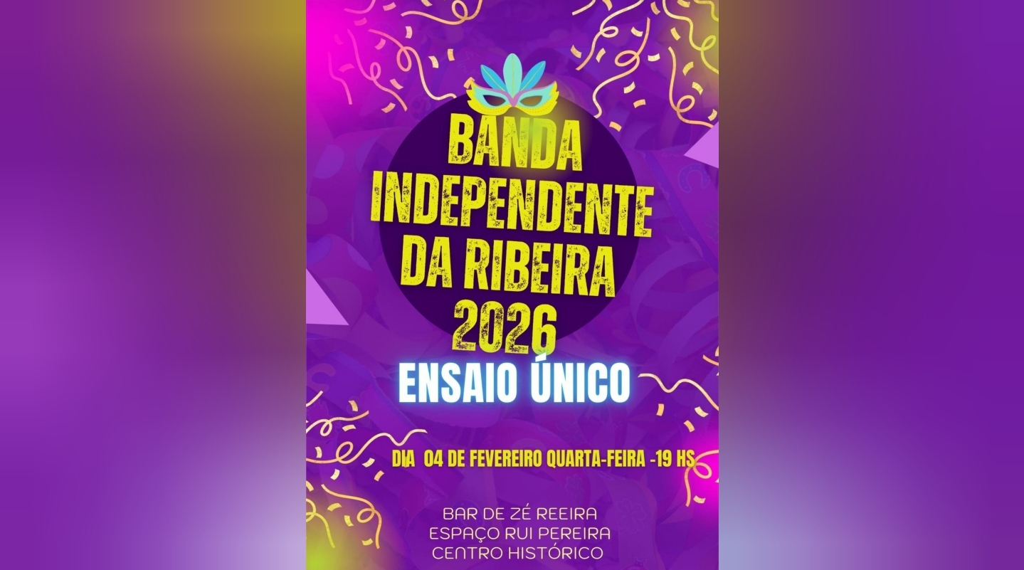 A Banda Independente da Ribeira realiza seu ensaio único para o Carnaval 2026 nesta quarta-feira (4), às 19h, no Bar do Zé Reeira, localizado no Espaço Rui Pereira, Centro Histórico de Natal.
