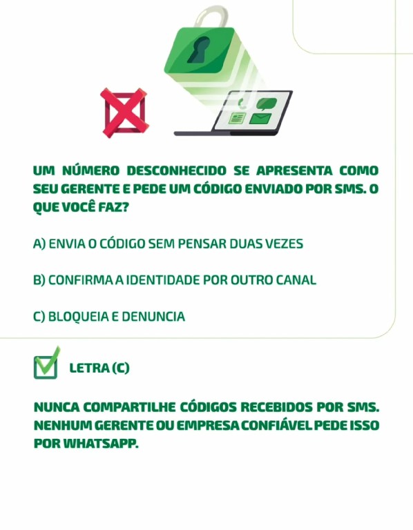 Golpes no WhatsApp estão cada vez mais comuns e saber se proteger faz toda a diferença! Que tal testar seus conhecimentos com um quiz rápido e aprender a se prevenir de forma simples e prática?