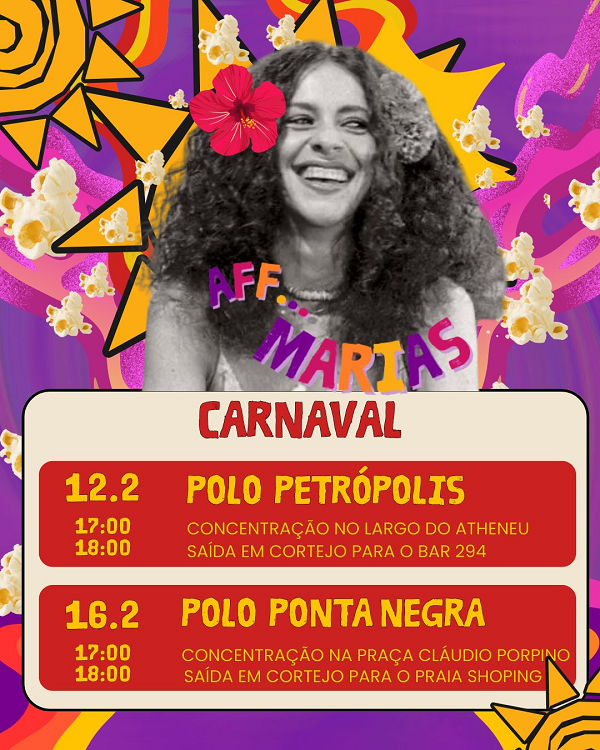 O AFF MARIAS foi fundado em junho de 2024 na cidade de Natal. É formado por cerca de 50 mulheres atualmente, de várias profissões, idades, raças, cores, desejos, e anseios que tocam percussão e cantam músicas brasileiras em ritmo de carnaval.