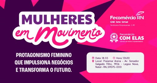 O presidente da Fecomércio RN, Marcelo Queiroz, convida para o evento “Mulheres em Movimento”, uma promoção da Câmara da Mulher Empreendedora – Fecomércio Com Elas, que acontecerá no dia 18 de março, às 13h30, no Praiamar Arena (antigo Holiday Inn).